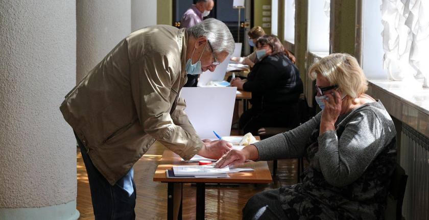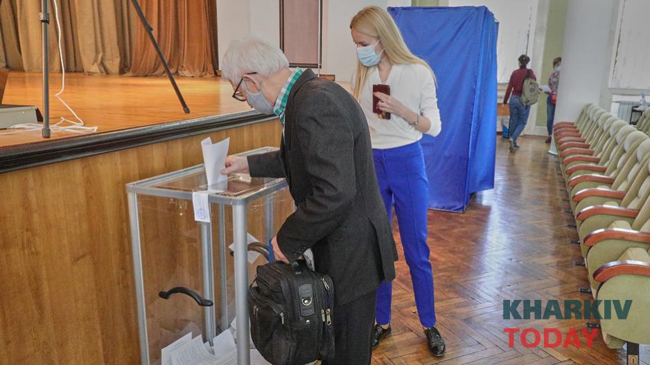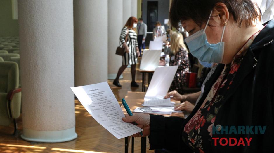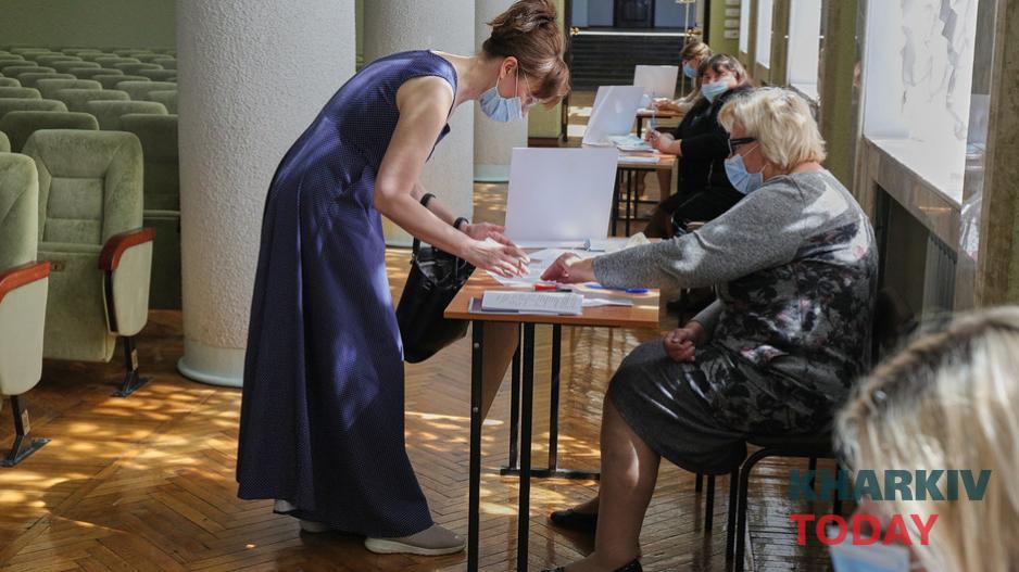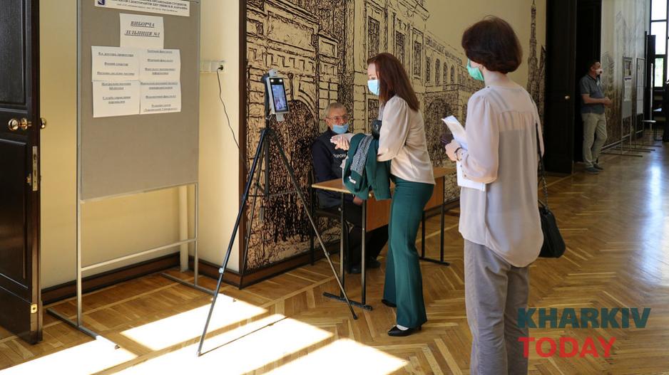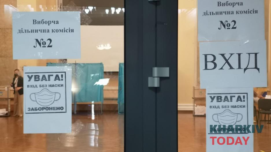 Атмосфери виборів у головному корпусі, де голосує більшість виборців, зовсім не відчувається. Виною тому — коронавірусні часи: університетські коридори порожні, студенти вчаться онлайн. Виборчу дільницю №1 обладнали в актовому залі, столи з бюлетенями чинно розставлені вздовж стін. Знімати крісла і розширювати проходи не стали — в цьому немає потреби, у черзі за бюлетенями ніхто не вибудовується.