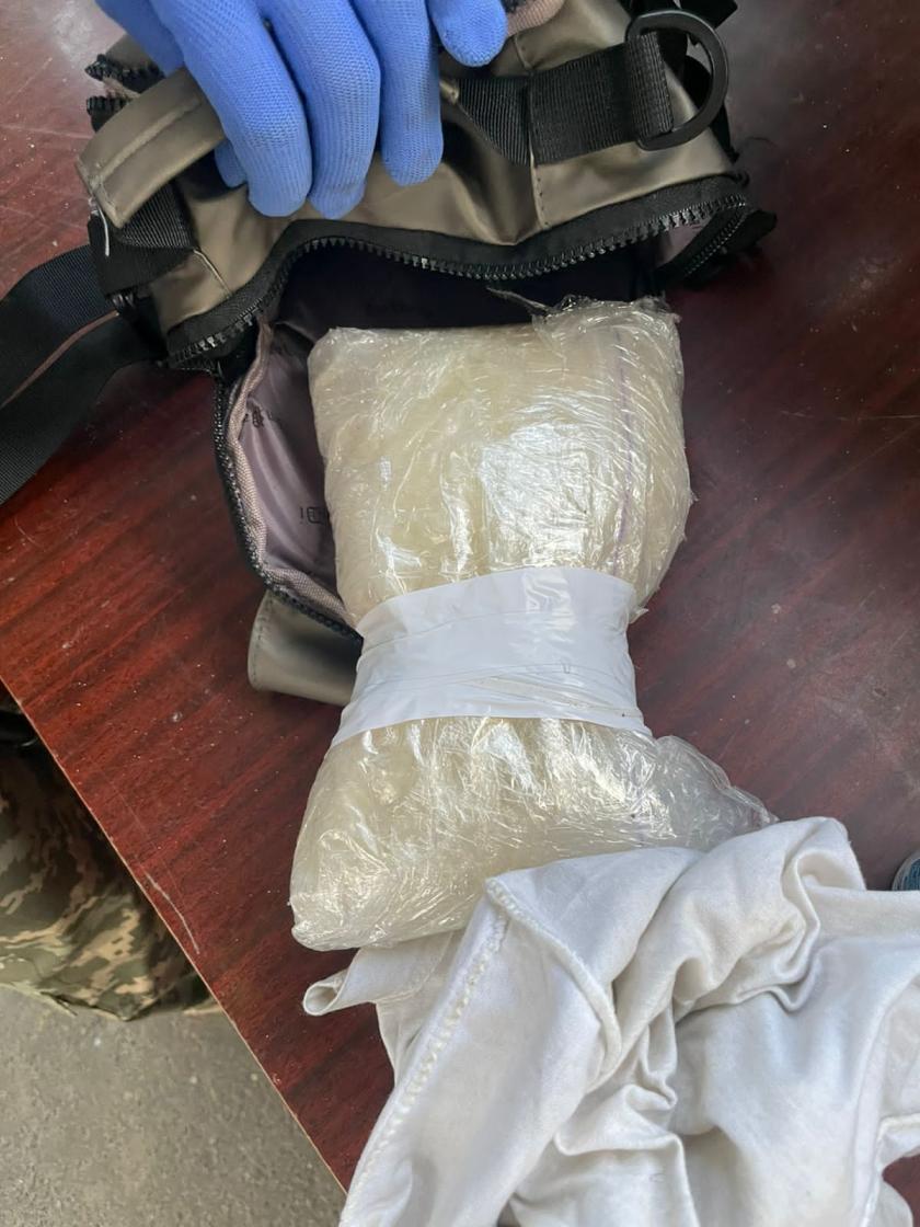 На контрольному посту співробітники Державної прикордонної служби України перевіряли автобус, який їхав у Харків. Під час перевірки службовий собака відреагував на одного із пасажирів — 43-річного чоловіка. Поліцейські оглянули його рюкзак і знайшли там пакунок із кристалічною білою речовиною. У пакунку вагою кілограм були синтетичні наркотики.
