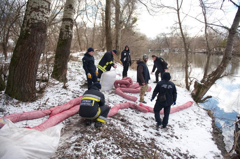 У Харківській області продовжують блокувати поширення нафти, яка витекла у річки після російського обстрілу Немишлянського району 9 лютого.
