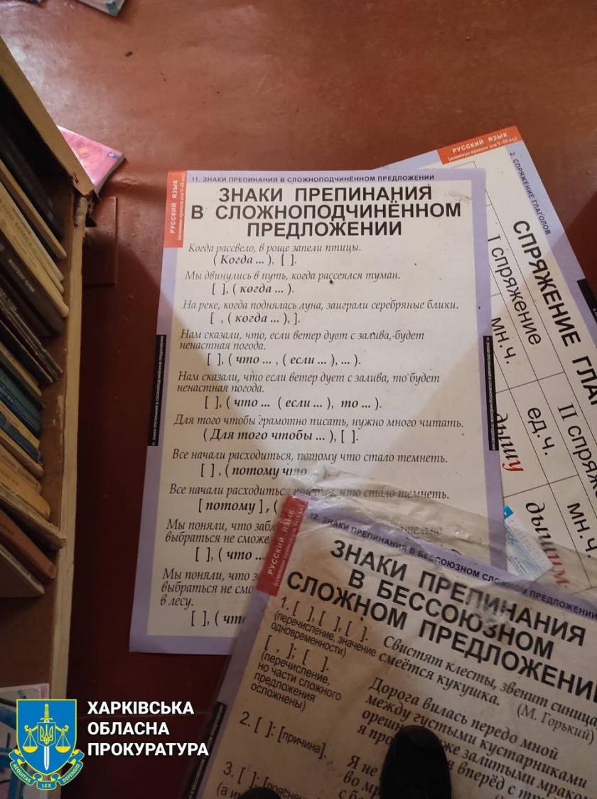 Крім того, у Харківській обласній прокуратурі повідомили про вилучення близько 500 російських підручників у гімназії в селі Лісна Стінка Куп'янського району. Книжки окупантів знаходилися в усіх кабінетах гімназії.