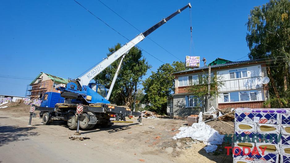 Відбудову трьох багатоквартирних житлових будинків у Дергачах планують завершити у жовтні.