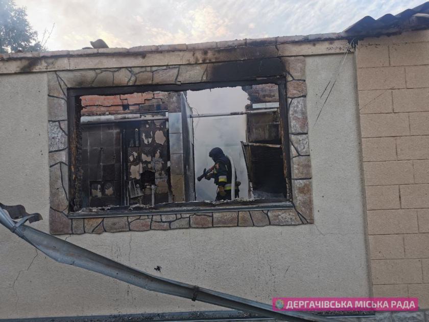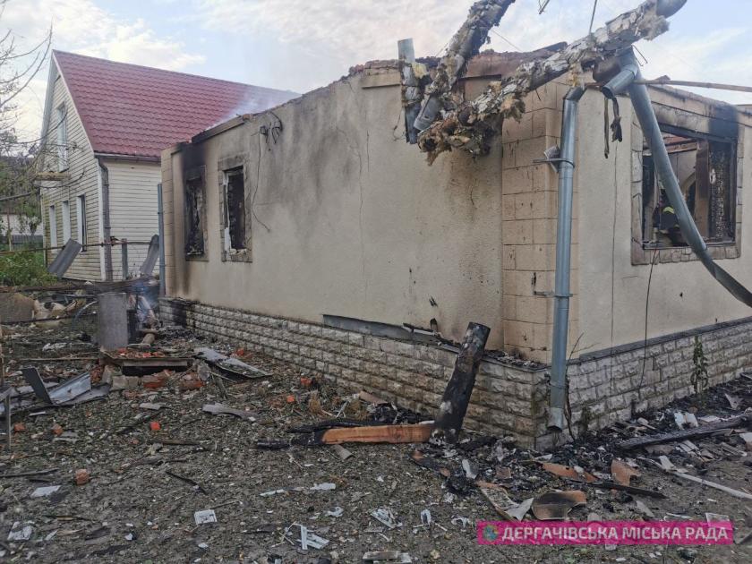 "Внаслідок ворожого обстрілу сталася пожежа житлового будинку площею у 90 м. кв. Різного ступеня руйнацій зазнали більше трьох приватних домоволодінь. На щастя, постраждалих немає. Профільні служби працюють на місці", — розповів начальник Дергачівської міської військової адміністрації Вячеслав Задоренко.
