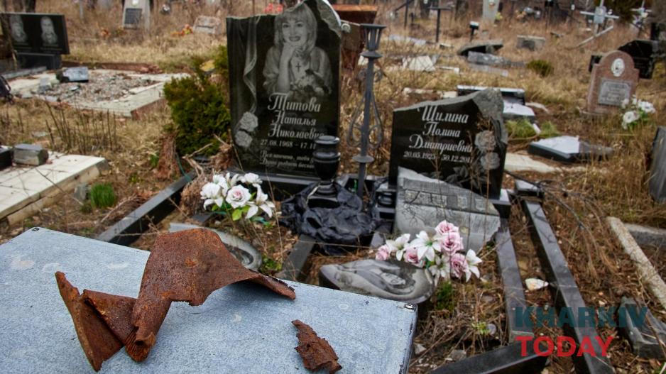 На найбільшому міському цвинтарі №17, яке знаходиться біля Окружної, зараз висить велика вивіска про те, что вхід-в'їзд заборонені через небезпеку. На алеях між рядами могил видніються вирви від розривів російських снарядів. Багато могил і надгробних плит пошкоджені, деякі розбиті і повалені.