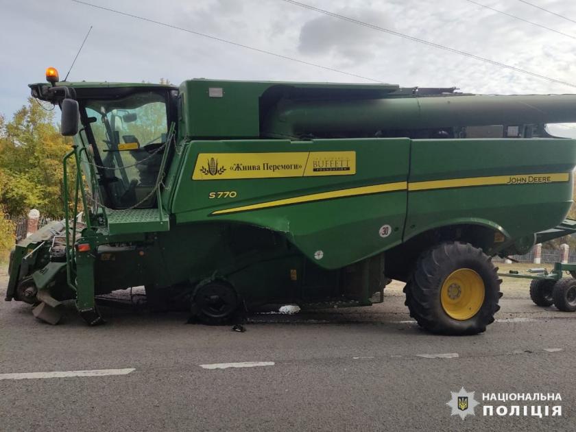 "Водійка автомобіля Subaru допустила зіткнення з комбайном зернозбиральним "John Deere". Від отриманих тілесних ушкоджень 38-річна жінка загинула на місці", — йдеться в повідомленні.
