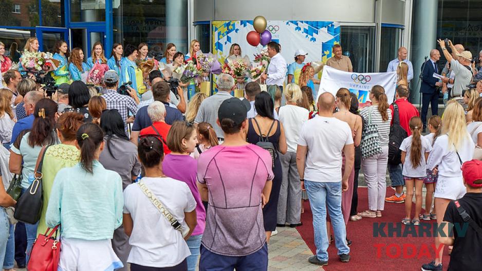 Біля Палацу спорту "Локомотив" (вулиця Велика Панасівська, 90/1) команду і тренерів чекали друзі, родичі і фанати. Зустрічали "русалоньок" квітами та оплесками. Після офіційної зустрічі з володарками олімпійських медалей фотографувалися.
