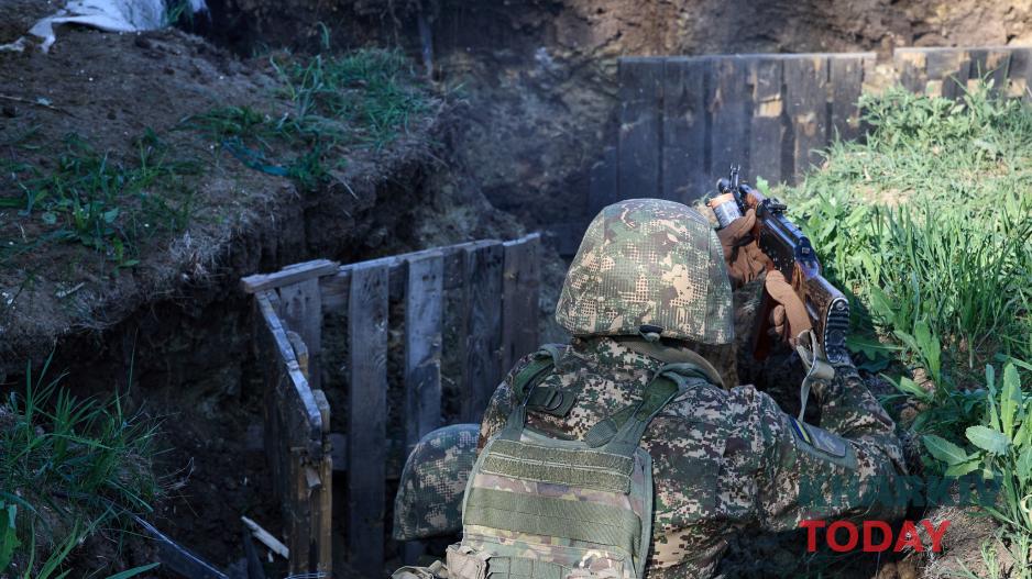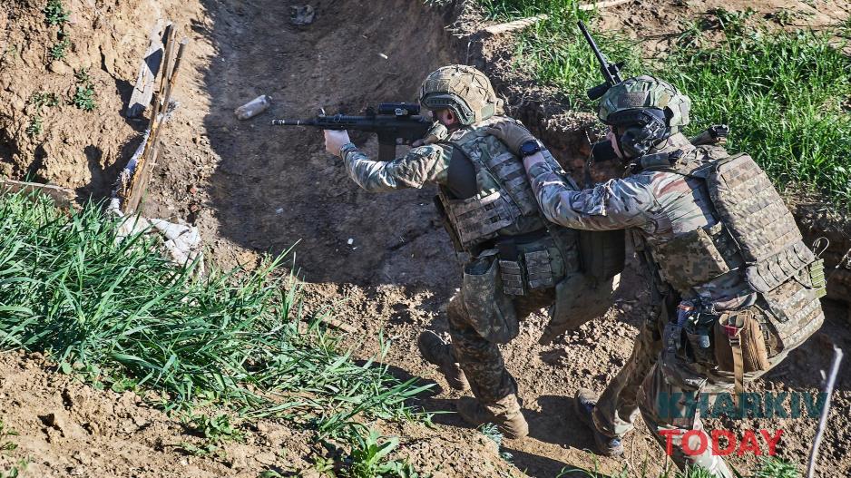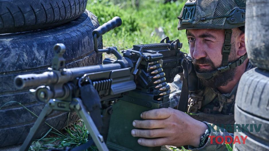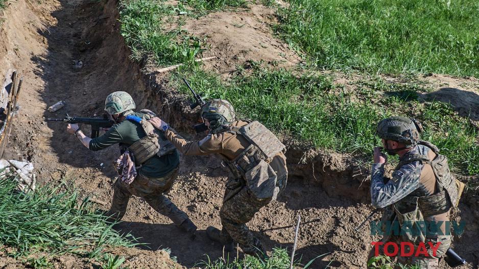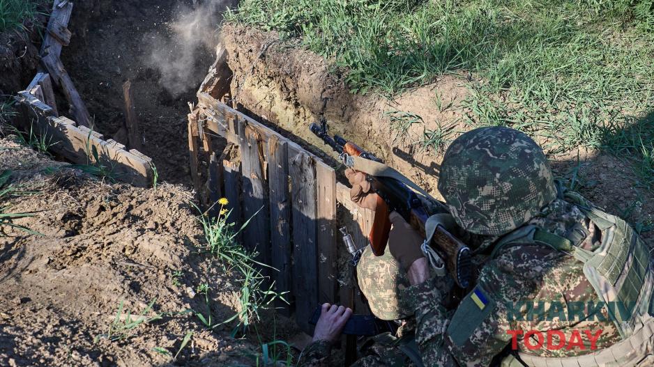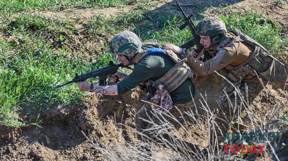 На навчаннях бійці рухаються двійками та працюють під прикриттям кулемету. У тренуваннях використовували сучасні штурмові гвинтівки українського виробництва UAR-15 та стрілецьке озброєння старого зразка. Тренування проводились у Харківській області.