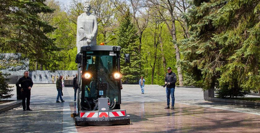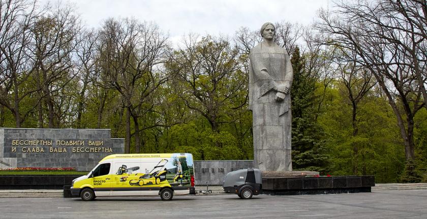 Гранітні покриття Меморіалу Слави очистили за допомогою сучасної техніки.