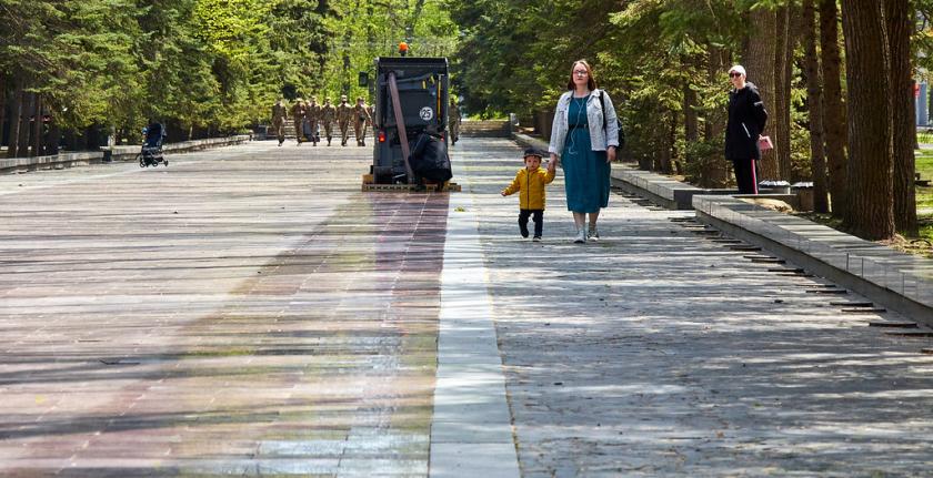 Вдень, 6 травня, протягом 4,5 годин там очищали гранітні покриття центральної алеї та майданчики перед вхідними стелами.