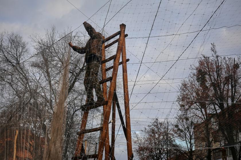 На Харківщині продовжують захищати міста та інфраструктуру антидроновими сітками. В Ізюмі, що розташований приблизно за 25 кілометрів від лінії боєзіткнення, сітки почали з`являтися кілька місяців тому. Зараз військові інженерних військ Сил підтримки ЗСУ, волонтери та комунальники затягнули основні траси та під`їзні шляхи до міста.
