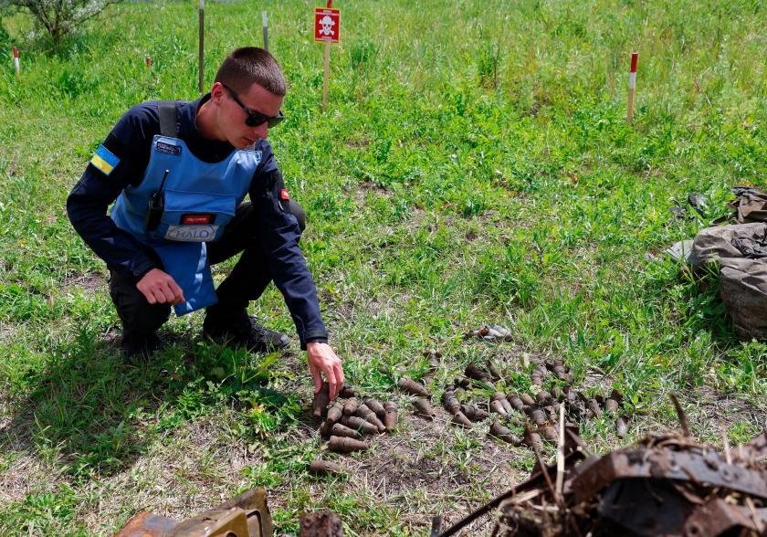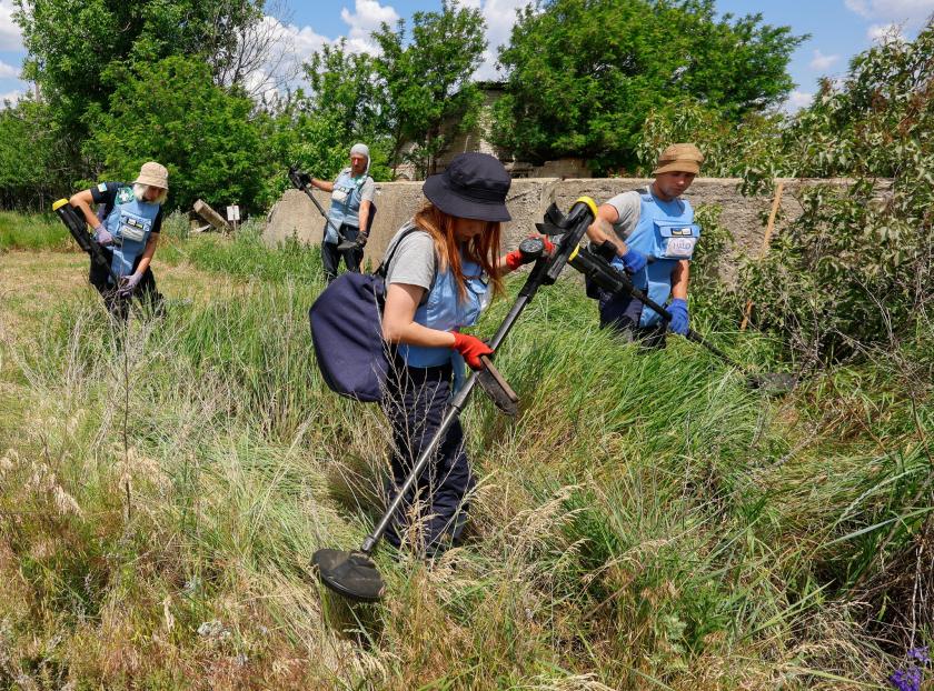 Загалом в Україні над розмінуванням працюють 1600 працівників, з яких 30% жінки. На сьогодні у Харківській області обстежено 17 966 999 м2, розміновано 1 750 320м2, виявлено 4436 боєприпасів.