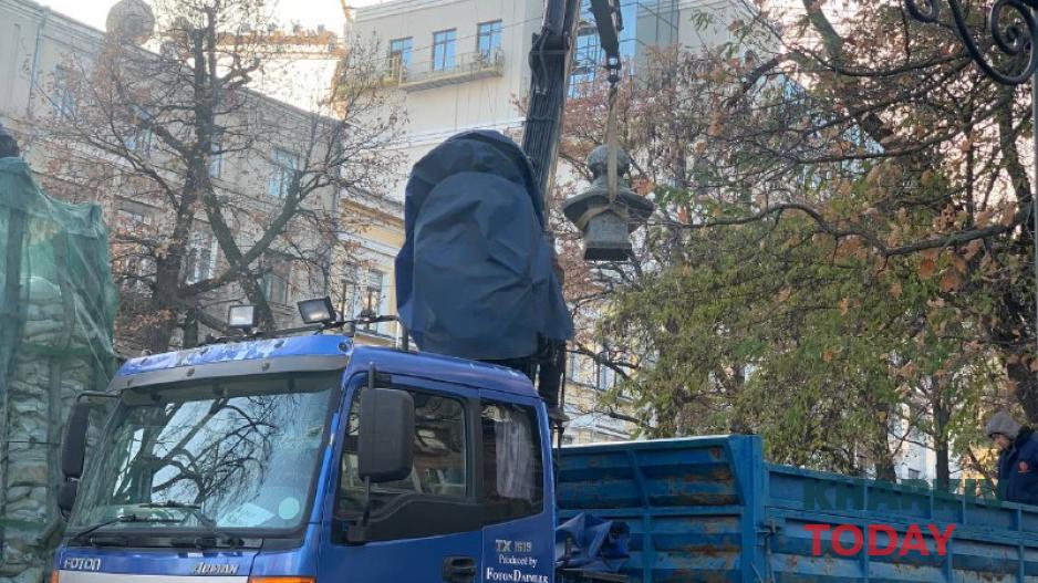 Уже о 14:30 робочі обережно "розпакували" Пушкіна, підняли бюст маніпулятором, завантажили на вантажівку і вивезли в невідомому напрямку. Комунальники пообіцяли, що Пушкіна будуть старанно зберігати.