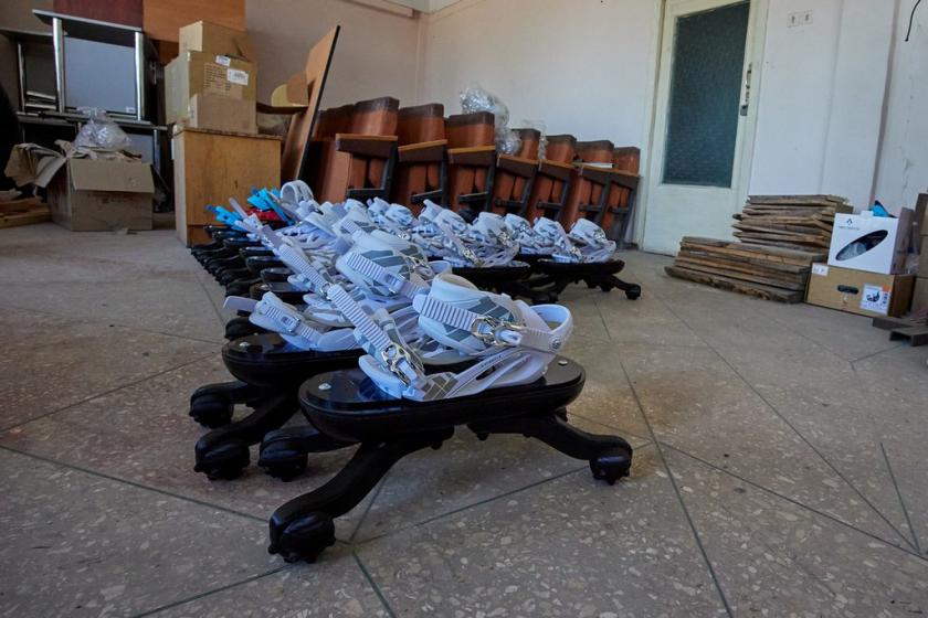 Спеціальне взуття для саперів виглядає, наче сандалі на дуже товстій платформі, що встановлена на чотири міцні ніжки. Узятися за їх виготовлення власника харківського підприємства з виробництва ресор та бронежилетів Ігоря Єфіменка спонукав нещасний випадок, що трапився з його родичем.