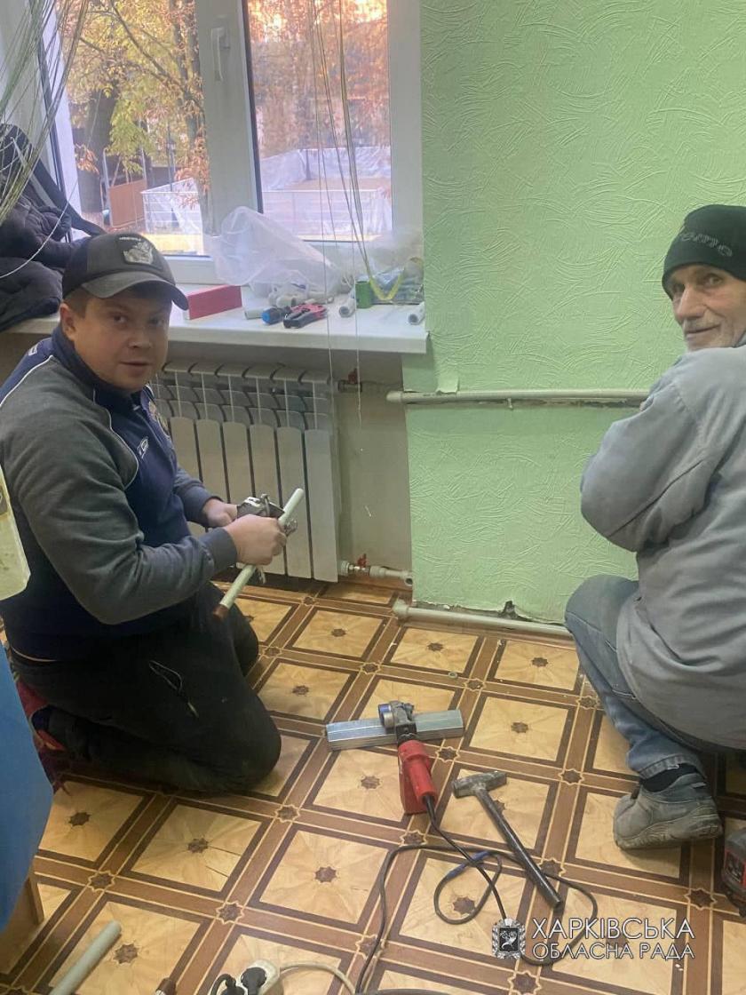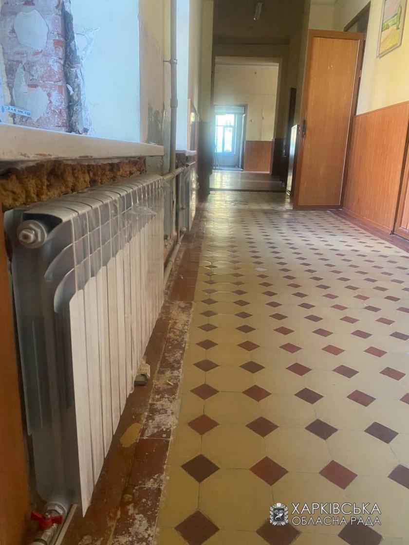 "Наразі проведено демонтажні роботи в приміщеннях школи, садка, пральні/гаражу, змонтовано 3138 погонних метрів труби внутрішньої розводки з фасонними деталями та арматурою, змонтовано 3856 секцій біметалевих радіаторів, завершено роботи з монтажу ІТП [індивідуального теплового пункту — ред.]", — розповів заступник керуючого справами виконавчого апарату Харківської облради Максима Колінька.