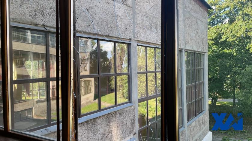 У будівлі вишу, гуртожитках та будинках поряд розбиті вікна.