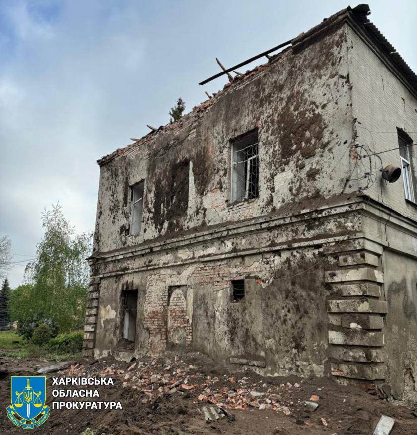 "Одна з ворожих ракет влучила біля харчоблока, інша — в декількох метрах від відділення, в якому знаходилось 60 пацієнтів та 5 осіб персоналу", — повідомили у Харківській обласній прокуратурі.