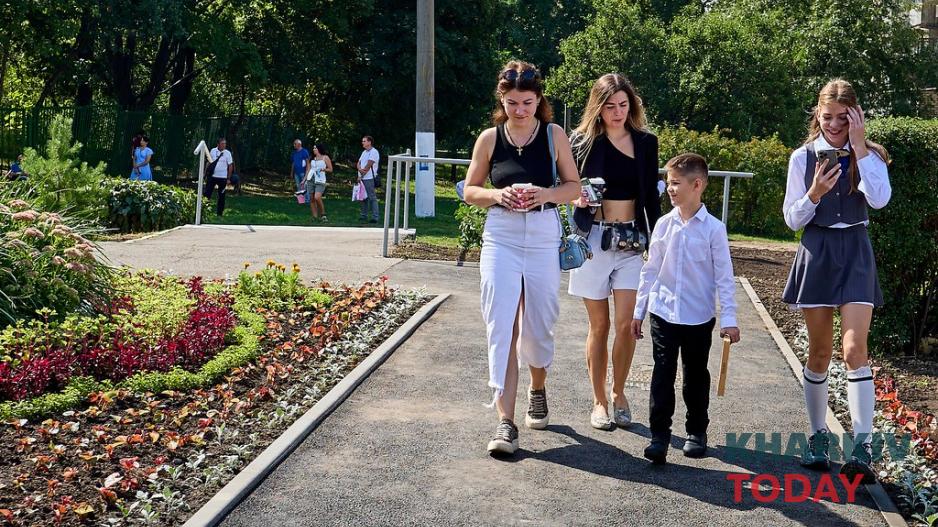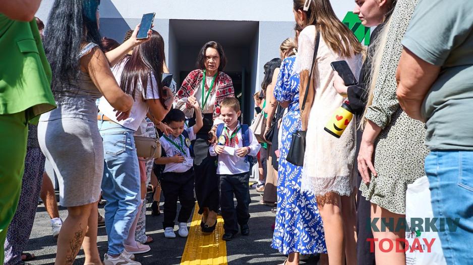 Шкільної форми немає, діти одягнені переважно в білі сорочки та темні брюки чи спідниці, багато учнів та вчителів прийшли у вишиванках. А от рюкзаки у всіх однакові: рожеві в дівчаток та сині у хлопчиків. Це ті самі, які зі своїм ім'ям роздавав міський голова. Майбутнім випускникам від імені мера вручили термокружки — також з іменем Ігоря Терехова.