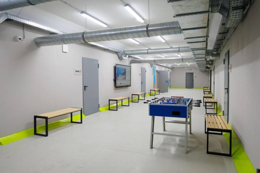 Судячи зі світлин, в укритті є сучасні меблі та обладнання для навчання дітей, у холі розташовані настільні ігри.