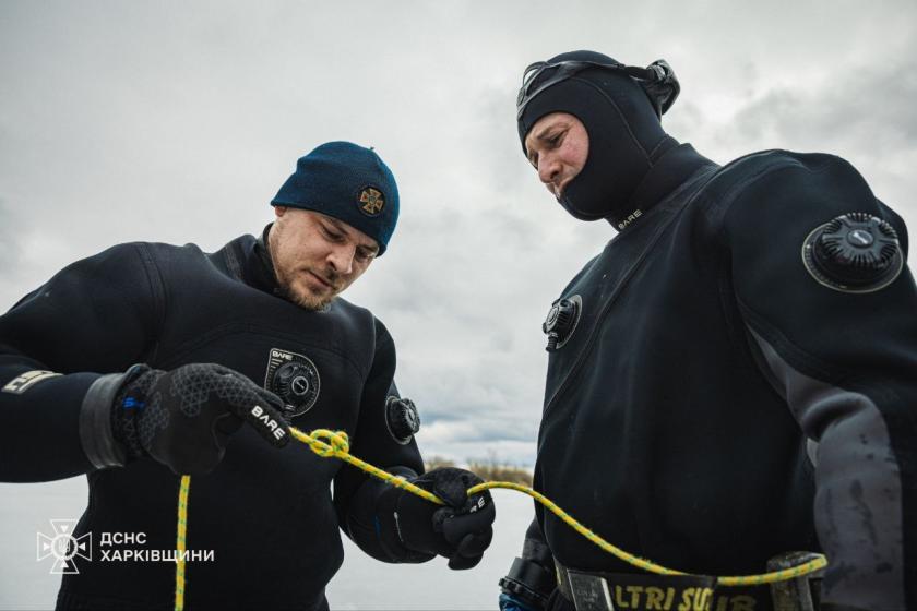 "Про їх влучання у водойму фахівців ДСНС повідомили місцеві мешканці. Водолази виконували пошукові роботи у крижаній воді в умовах цілковитої темряви. Вони підняли виявлений предмет на поверхню з дотриманням усіх вимог безпеки", — розказали у ГУ ДСНС Харківської області.