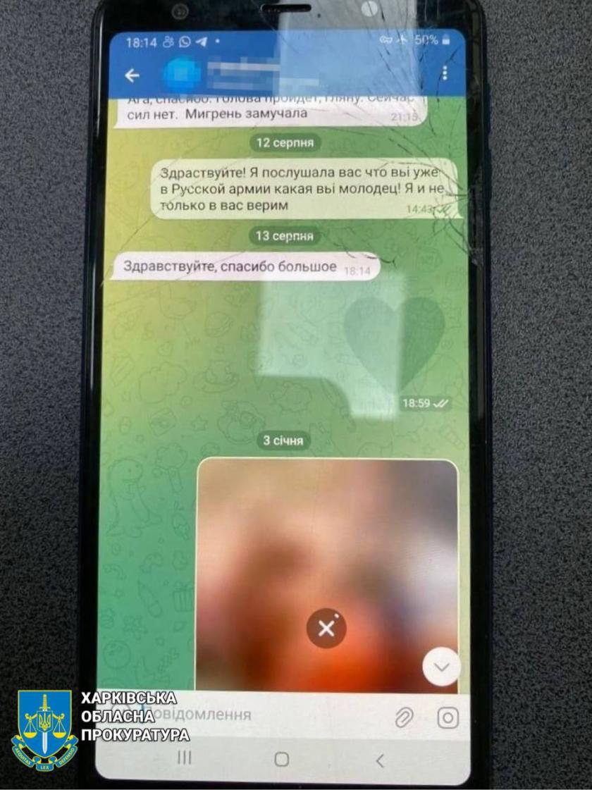 "Там жінка ділилася своєю позицією — запевняла інших користувачів, що президент рф "гуманный", стверджувала, що "Харьков скоро будет россией" та повторювала тези роспропаганди. У свою чергу, українських патріотів вона називала "зомбованими та психічно хворими людьми". Вона негативно висловлювалась про українських патріотів та схвалювала дії російських військових на території нашої держави. Протиправний характер висловлювань зловмисниці підтверджено відповідним висновком експертизи", — розповіли у Харківській обласній прокуратурі.