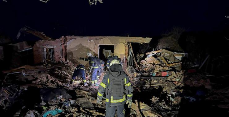 "Одне з влучань сталося по житловому будинку, який був повністю зруйнований. Сталася пожежа на площі 50 м кв. З-під завалів вилучено тіла двох загиблих: жінки та 10-річного хлопчика", — повідомили у ГУ ДСНС Харківської області.
