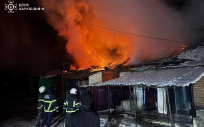 На Харківщині загорівся багатоквартирний будинок барачного типу