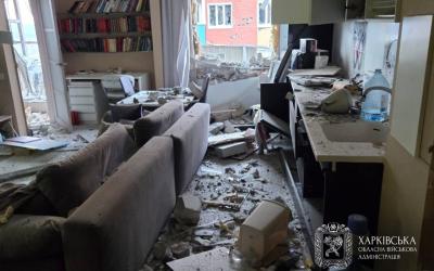 Російський ударний дрон влучив у 27-поверхівку у Харкові