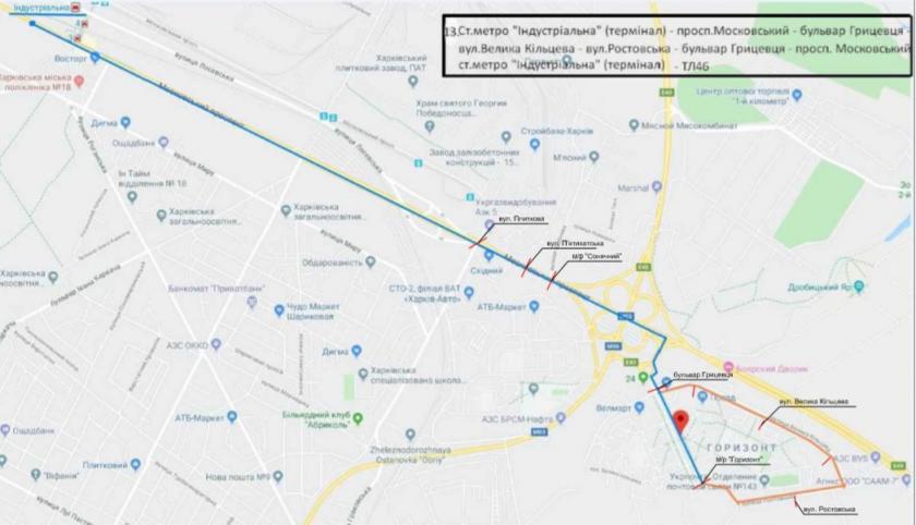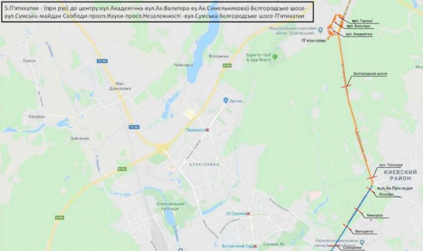 - П'ятихатки і площа Незалежності (від вулиці Академіка Проскури по Білгородському шосе до П'ятихаток і назад тролейбус буде йти на запасі ходу);