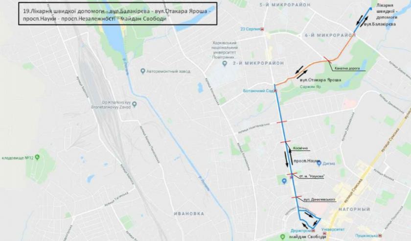 - від 4-й лікарні невідкладної допомоги через вулицю Отакара Яроша до Держпрому.
