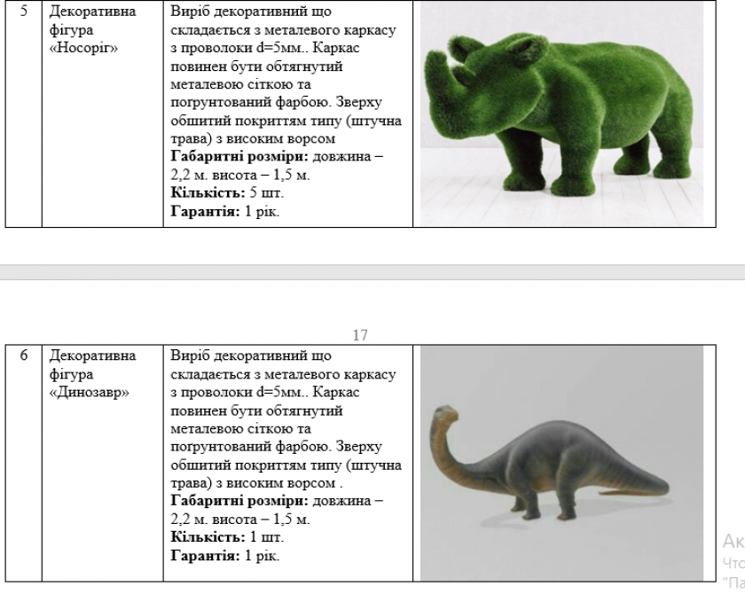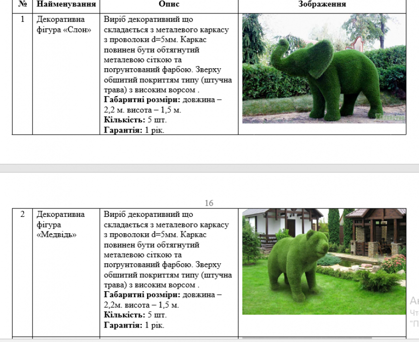 Поставити фігури повинні до 30 вересня цього року, а гарантія на них повинна бути один рік.