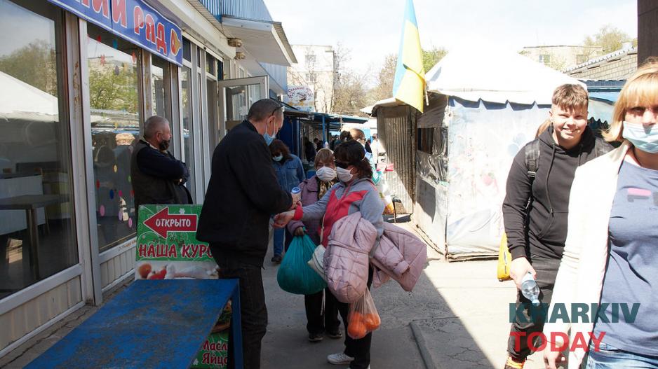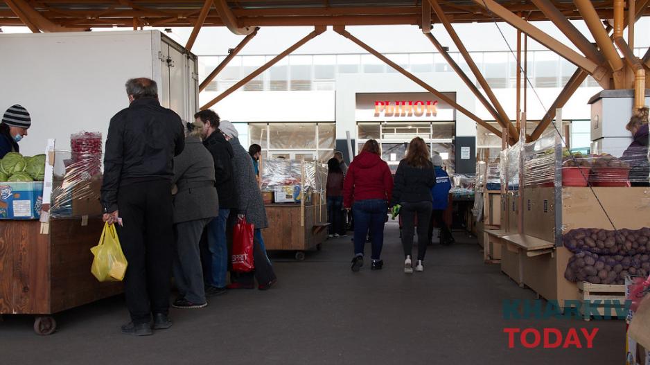 Уже до вихідних торгівля ожила. Покупці, які скучили за звичними базарними продуктами, шикуються в чергу за свіжими овочами. Зайняті далеко не всі ряди: тут завжди торгували не лише підприємці, а й жителі передмістя, які привозили до Харкова овочі, зелень, молоко і яйця з власних господарств. Зараз їм нема на чому добиратися до міста. Зате торгівля контрабандними сигаретами — тут як тут, двоє продавців з лотками розмістилися прямо біля перону автостанції.