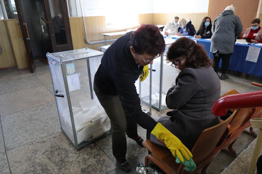 Також на ділянках чергують медики, які моніторять стан здоров'я виборців і допомагають ДВК здійснювати дезінфекцію.