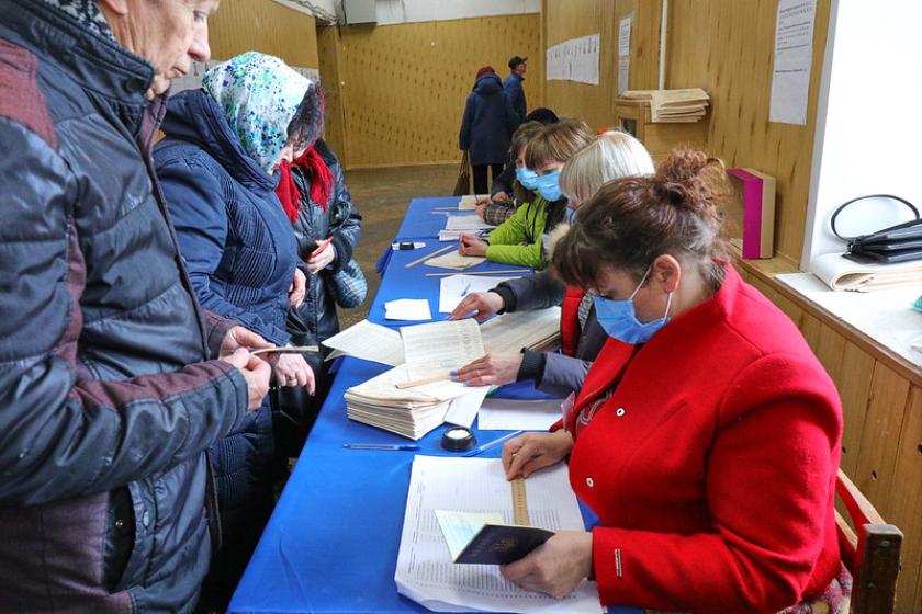 У ЦВК розповіли, що у зв'язку з карантином, введеним Кабінетом міністрів України через загрозу епідемії коронавірусної інфекції, члени дільничних виборчих комісій використовують індивідуальні засоби захисту, антисептики і при бажанні вимірюють температуру.