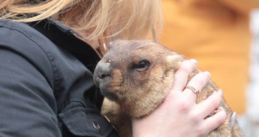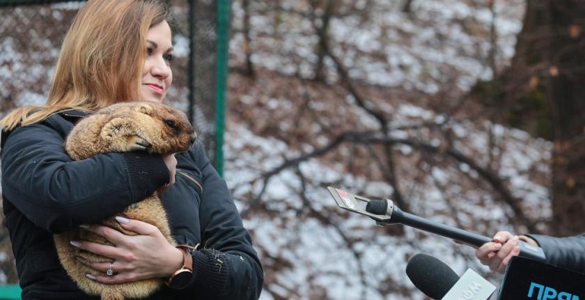 Нагадаємо, проснувся головний синоптик України кілька днів тому. Під час фотосесії тварина помітно нервувала на руках у берегині і "посвистувала".