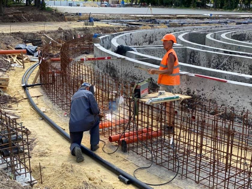 За словами Терехова, зараз завершується будівництво каркаса фонтану, робочі заливають останнє бетонне кільце конструкції.