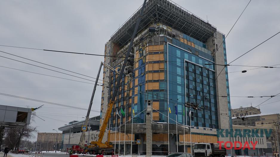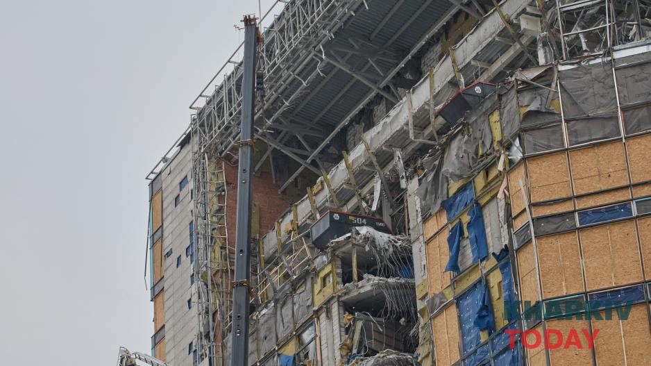 За словами Євгена Василенка, завтра бригада, яка працювала над демонтажем конструкцій Kharkiv Palace, переміститься до іншого пошкодженого росіянами готелю — на вулиці Шевченка, 79.