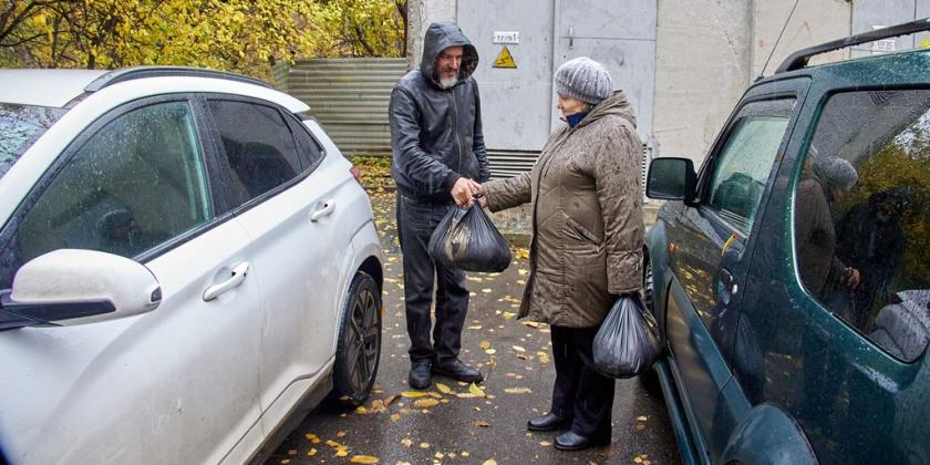 Волонтери доставляють їжу місцевим військовим підрозділам і медикам. Готові страви Харковом розвозить водій Кирило Касвінов.
