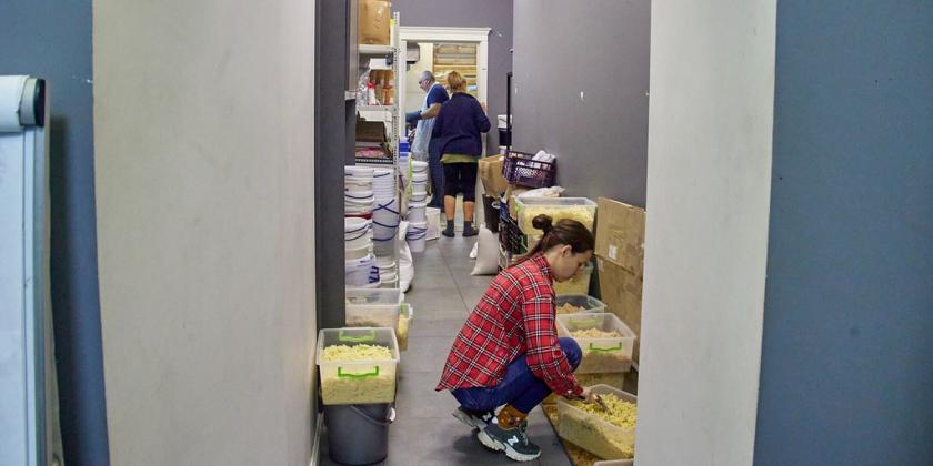 Щодня у "Пекельній кухні" готують до 1500 обідів, розповів співзасновник організації Єгор Горошко "Суспільному". У команді близько півсотні волонтерів.