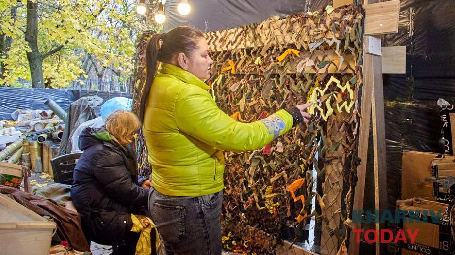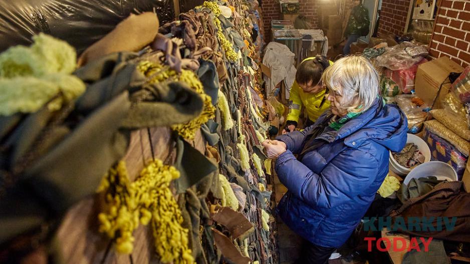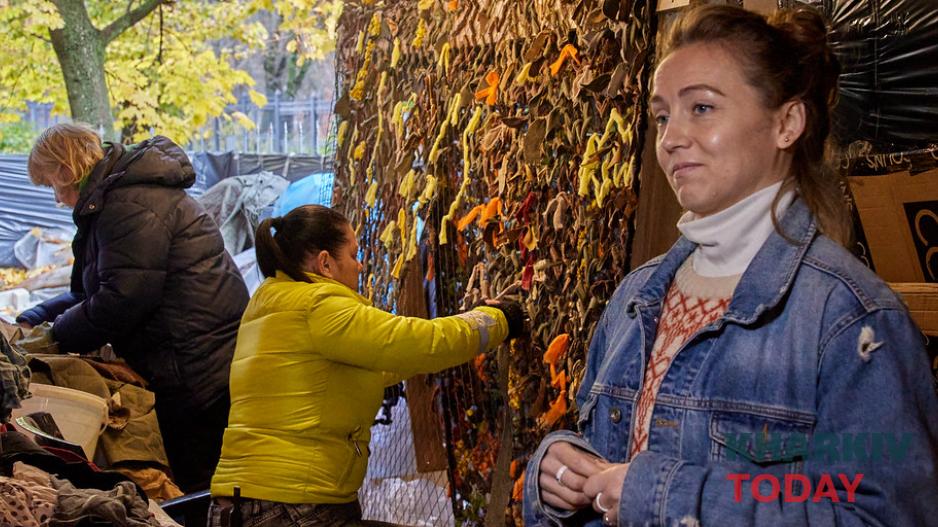 Харківські волонтери плетуть маскувальні сітки з російської військової форми. Матеріал привозять їм українські захисники. Волонтери рубають його сокирою, щоб далі легше було різати на смужки і називають це "терапією". Про це повідомило "Суспільне".