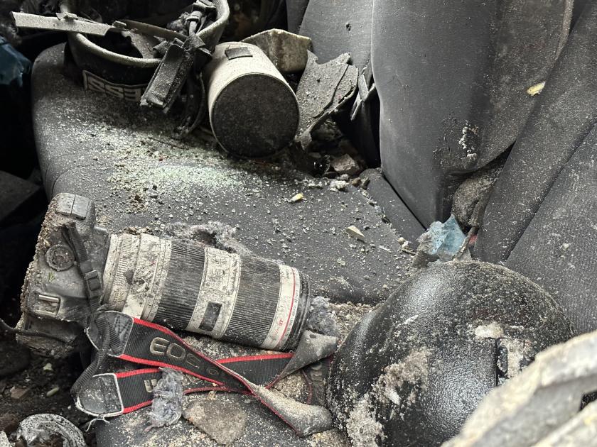 Верхні поверхи готелю зруйновані майже повністю: одна з ракет впала із внутрішнього двору та пошкодила дах, інша — перед входом будівлі.
