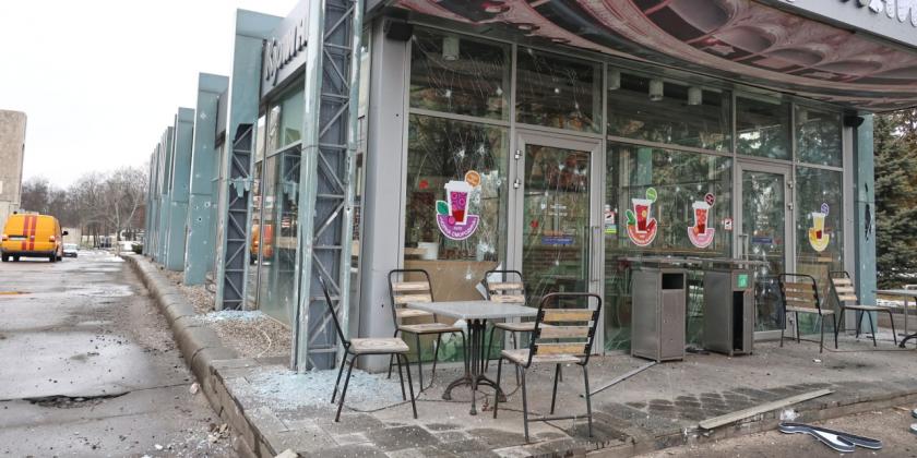 Вранці 1 березня у місті пролунала повітряна тривога і одразу ж пролунали вибухи в центрі міста: на площі Свободи, біля Клочківської, зоопарку, саду Шевченка. У Харківській облдержадміністрації та всіх сусідніх будівлях вибито вікна, частково зруйновано перекриття. У волонтерському наметі "Все для перемоги" ніхто не постраждав. Його перенесуть у безпечне місце у метрополітені.