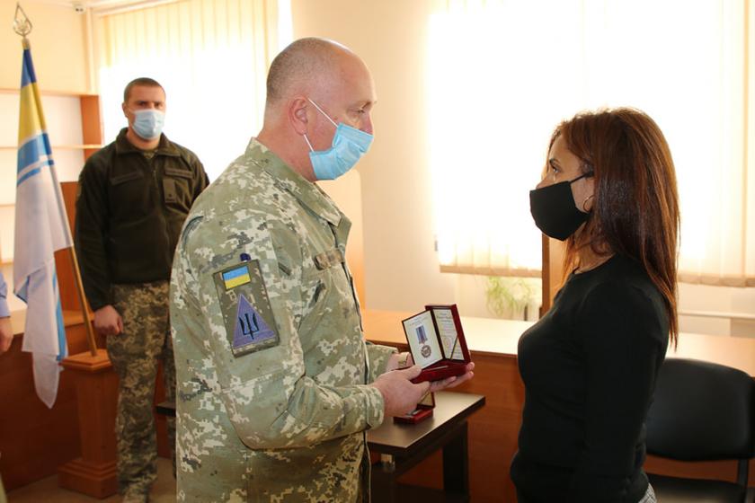 - Медаль капітана Олексія Остапенка вручили його дружині Олені Остапенко.