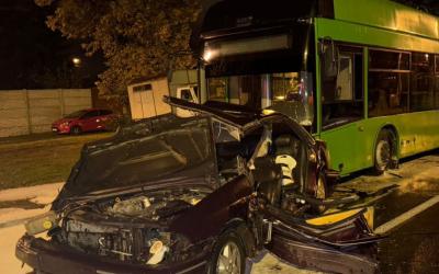 Автівка зіткнулась із припаркованим тролейбусом у Харкові