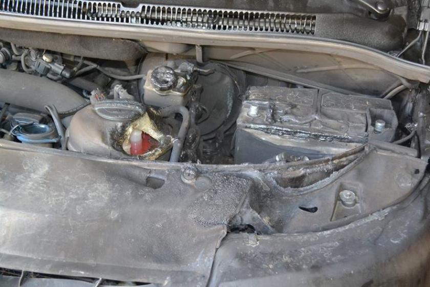 В это время хозяин машины вместе с друзьями находился рядом в гараже. Двери его были закрыты, но Анатолий услышал характерный хлопок и шипение. Вместе с друзьями он выскочил из гаража и потушил до приезда пожарных автомобиль. Сгорела лишь его передняя часть - бампер, фары, лопнуло стекло.