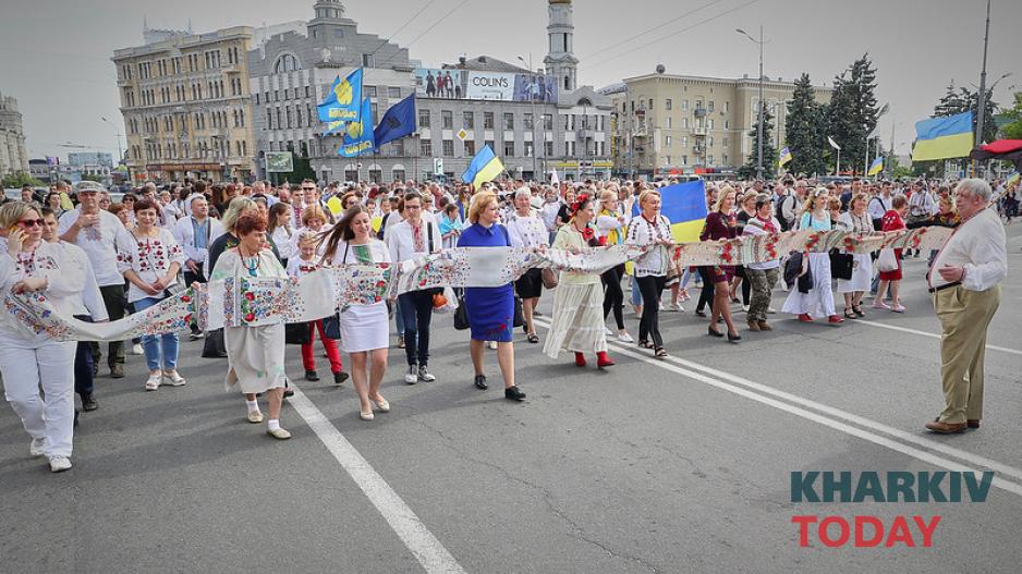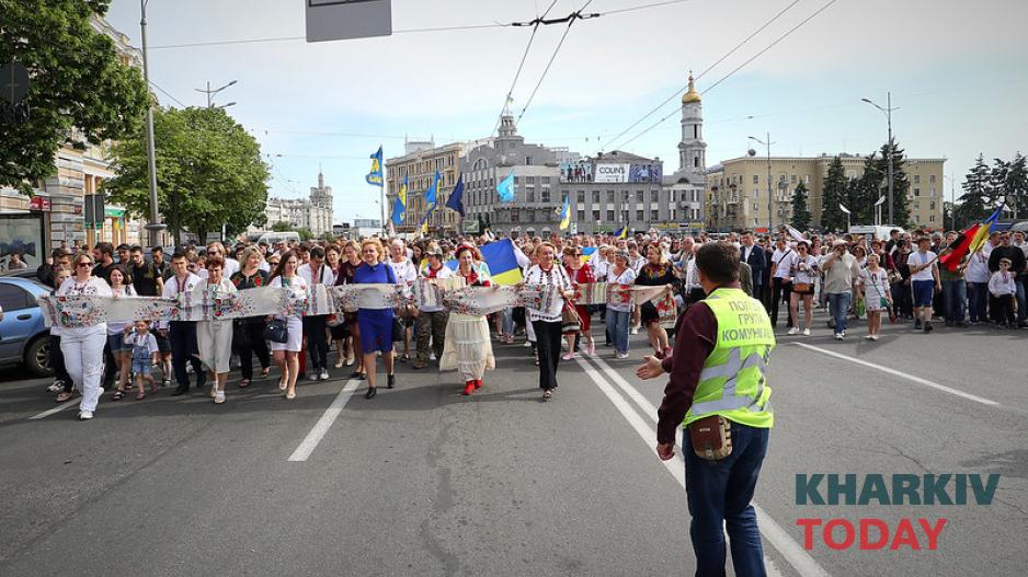 В вышиванках в центре Харькова прошлись около 2500 человек